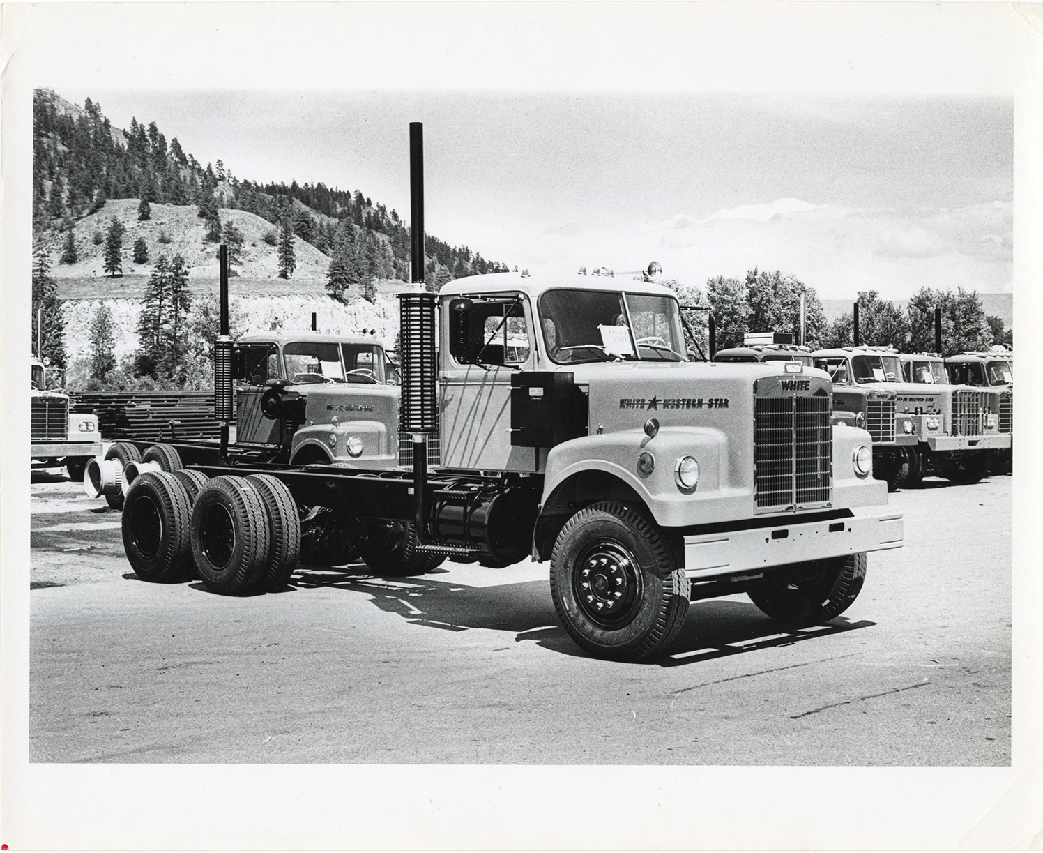Favorite this☆ White Western Star truck Description: View of a White Western Star truck. Mountains and additional White trucks in background. Details Resource ID: na052376 Subject: White trucks Photographic prints Date Issued: Unknown year Format: 1 photographic print ; 8 x 10 in. Member of: National Automotive History Collection Filing Location: Motor trucks--White Rights: Physical rights are retained by DPL. Copyright is retained in accordance with U.S. copyright laws.