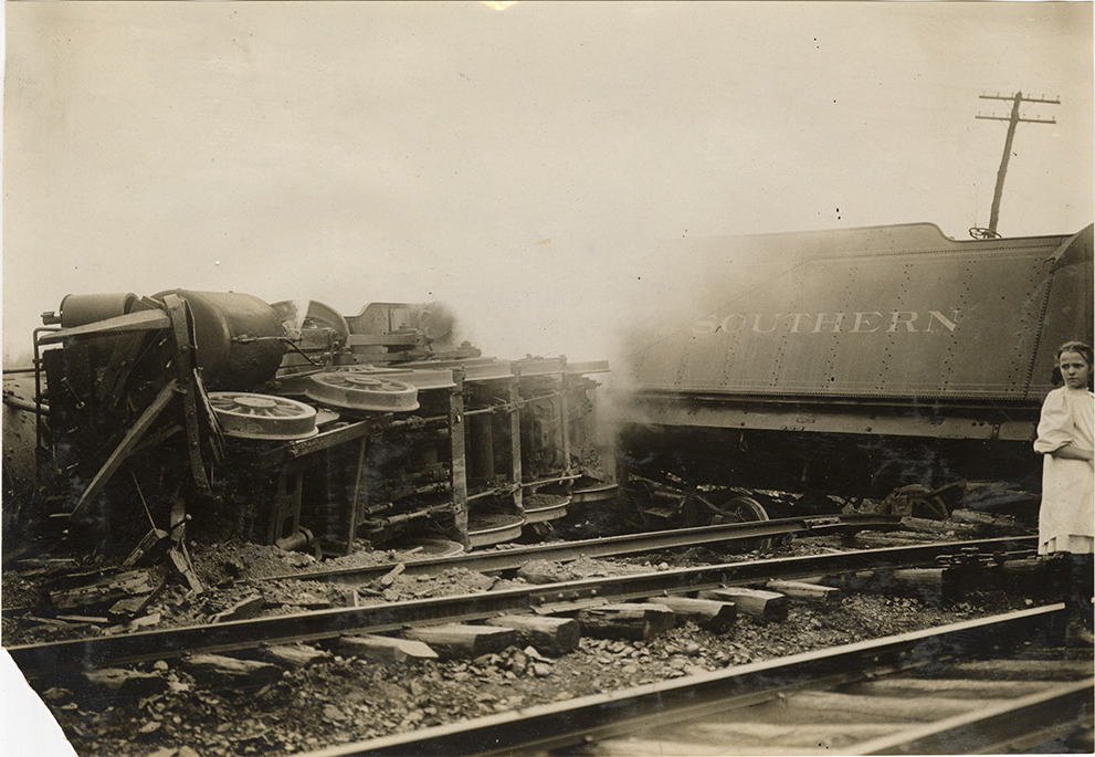 Favorite this☆ Wreck of Southern Railroad train Description: View of the aftermath of the wreck of a Southern Railroad train. Girl on right. Stamped on back: "Spooner & Wells, Inc., photographers, telephones 3472-3473 Columbus, 1931 Broadway, New York." Handwritten on back: "Wreck of Southern RR." Details Resource ID: na052505 Creator: Spooner & Wells Subject: Railroad accidents Southern Railway (U.S.) Railroad tracks Photographers--New York (State)--New York Photographic prints Date Issued: 1909 Format: 1 photographic print ; 4.5 x 6.5 in. Member of: National Automotive History Collection Lazarnick Collection Filing Location: Railroads Rights: Physical rights are retained by DPL. Copyright is retained in accordance with U.S. copyright laws.