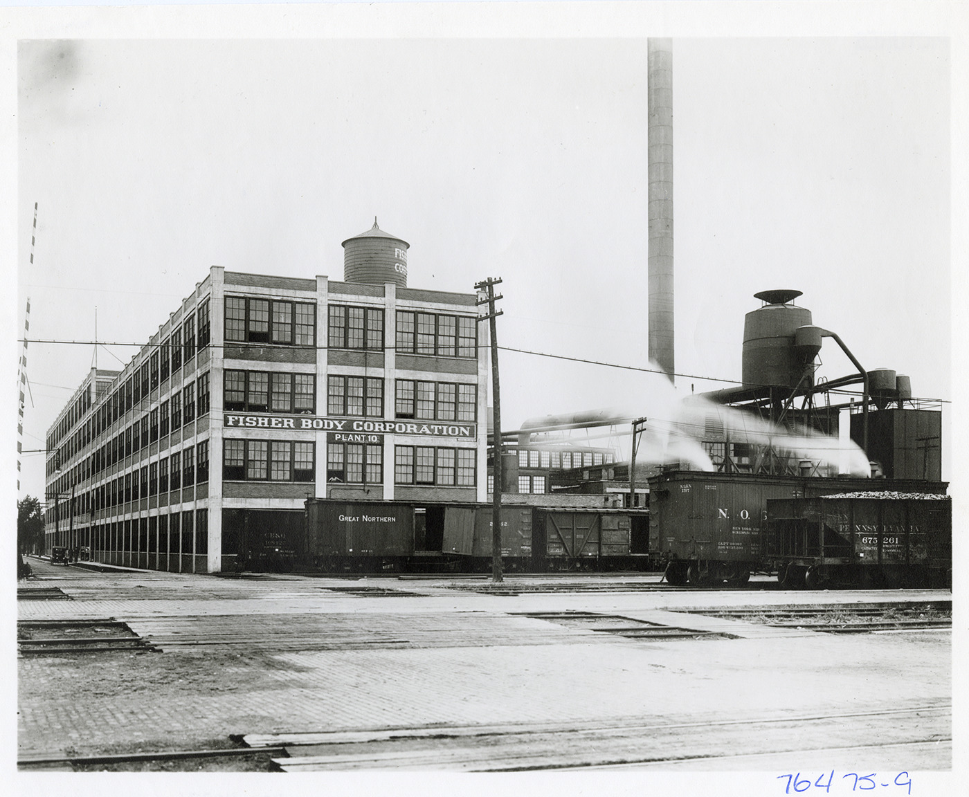 Favorite this☆ Fisher Body plant no. 10 Description: View of Fisher Body plant no. 10. Painted on building: "Fisher Body Corporation, plant 10." Railroad freight cars in foreground. Details Resource ID: na052673 Subject: Automobile factories--Michigan--Detroit General Motors Corporation. Fisher Body Division Photographic prints Date Issued: Unknown year Format: 1 photographic print ; 7.75 x 10 in. Member of: National Automotive History Collection Filing Location: Factories--Fisher Body Rights: Physical rights are retained by DPL. Copyright is retained in accordance with U.S. copyright laws.