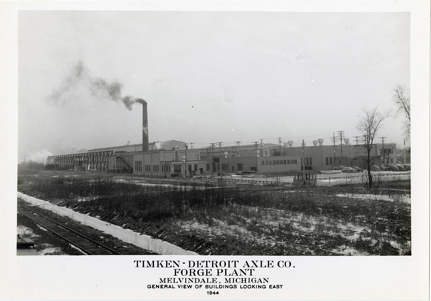 Favorite this☆ Timken-Detroit Axle Co. Forge Plant, Melvindale, Michigan Description: View of the Timken-Detroit Axle Co. Forge Plant, Melvindale, Michigan. Printed on front: "Timken-Detroit Axle Co. Forge Plant, Melvindale, Michigan. General view of buildings looking east, 1944." Details Resource ID: na052704 Creator: United States. War Production Board Subject: Factories--Michigan--Melvindale Timken-Detroit Axle Company Forge shops--Michigan--Melvindale Defense industries--Michigan--Melvindale Photographic prints Note (Source): Part of a collection of photographs documenting factories across Michigan and Ohio that were converted from civilian to military production during World War II. Date Issued: 1944 Format: 1 photographic print mounted on fabric ; 7 x 10 in. Member of: National Automotive History Collection Filing Location: MS125/Michigan and Ohio Wartime Production Architecture, 1:8 Rights: Physical rights are retained by DPL. Copyright is retained in accordance with U.S. copyright laws.