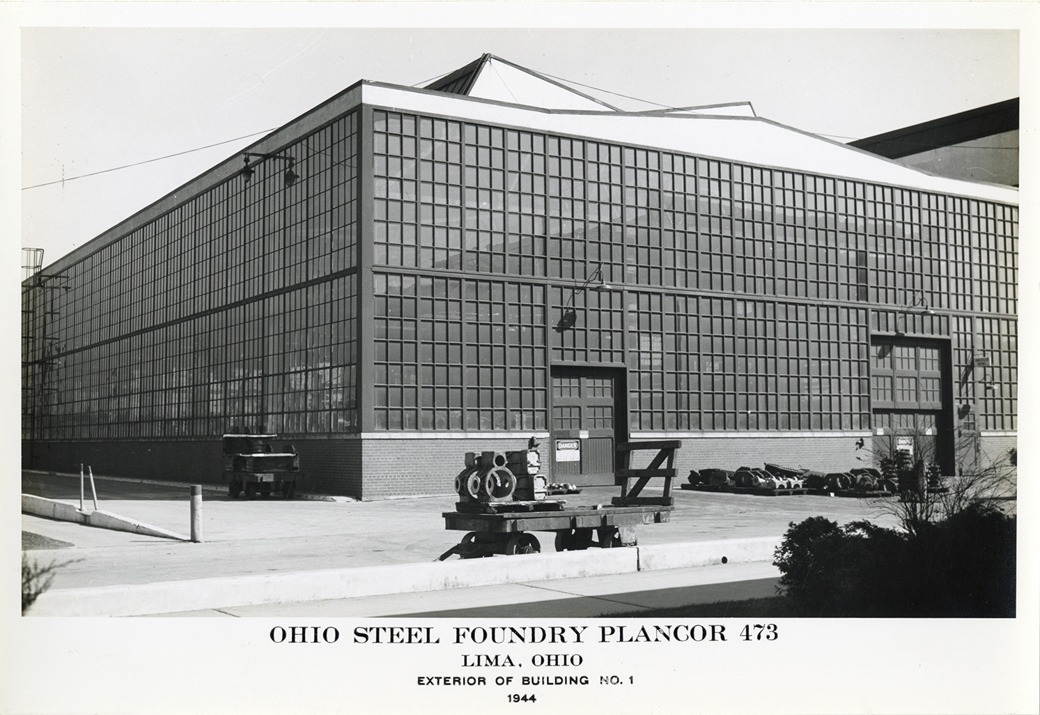Favorite this☆ Building no. 1, Ohio Steel Foundry Plancor 473, Lima, Ohio Description: View of Building no. 1, Ohio Steel Foundry Plancor 473, Lima, Ohio. Printed on front: "Ohio Steel Foundry Plancor 473, Lima, Ohio. Exterior of Building no. 1, 1944." Details Resource ID: na052734 Creator: United States. War Production Board Subject: Foundries--Ohio--Lima Factories--Ohio--Lima Defense industries--Ohio--Lima Photographic prints Note (Source): Part of a collection of photographs documenting factories across Michigan and Ohio that were converted from civilian to military production during World War II. Date Issued: 1944 Format: 1 photographic print mounted on fabric ; 7 x 10 in. Member of: National Automotive History Collection Filing Location: MS125/Michigan and Ohio Wartime Production Architecture, 1:14 Rights: Physical rights are retained by DPL. Copyright is retained in accordance with U.S. copyright laws.