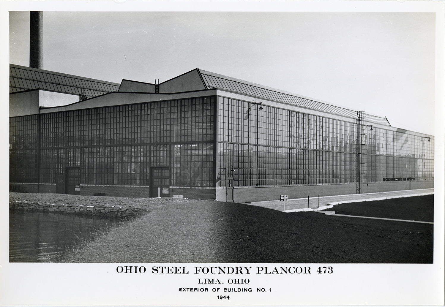 Favorite this☆ Building no. 1, Ohio Steel Foundry Plancor 473, Lima, Ohio Description: View of Building no. 1, Ohio Steel Foundry Plancor 473, Lima, Ohio. Printed on front: "Ohio Steel Foundry Plancor 473, Lima, Ohio. Exterior of Building no. 1, 1944." Details Resource ID: na052735 Creator: United States. War Production Board Subject: Foundries--Ohio--Lima Factories--Ohio--Lima Defense industries--Ohio--Lima Photographic prints Note (Source): Part of a collection of photographs documenting factories across Michigan and Ohio that were converted from civilian to military production during World War II. Date Issued: 1944 Format: 1 photographic print mounted on fabric ; 7 x 10 in. Member of: National Automotive History Collection Filing Location: MS125/Michigan and Ohio Wartime Production Architecture, 1:14 Rights: Physical rights are retained by DPL. Copyright is retained in accordance with U.S. copyright laws.