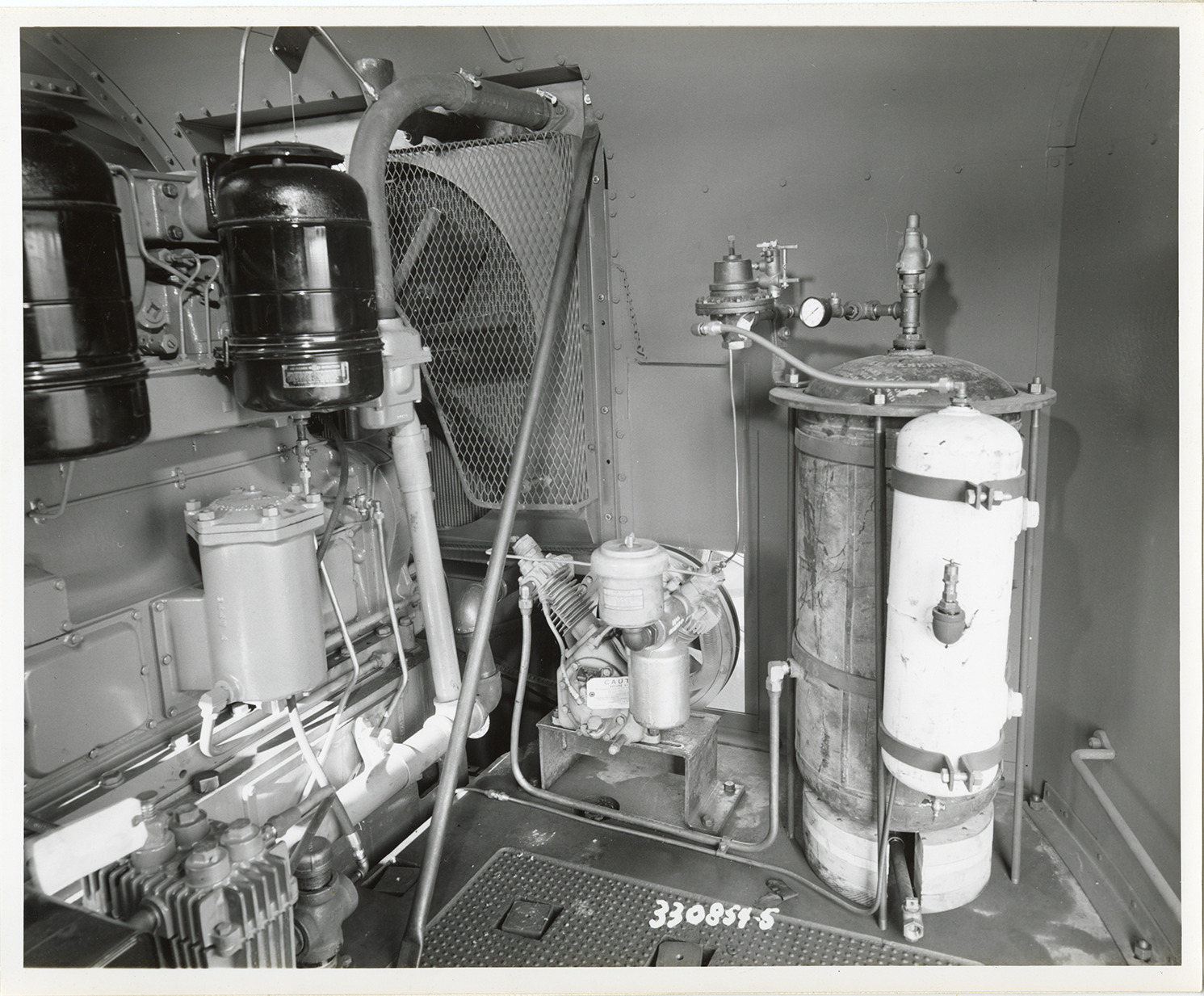 Cummins LRI-600 air compressor and air intake, crane shovel, Baldwin-Lima-Hamilton Corp.