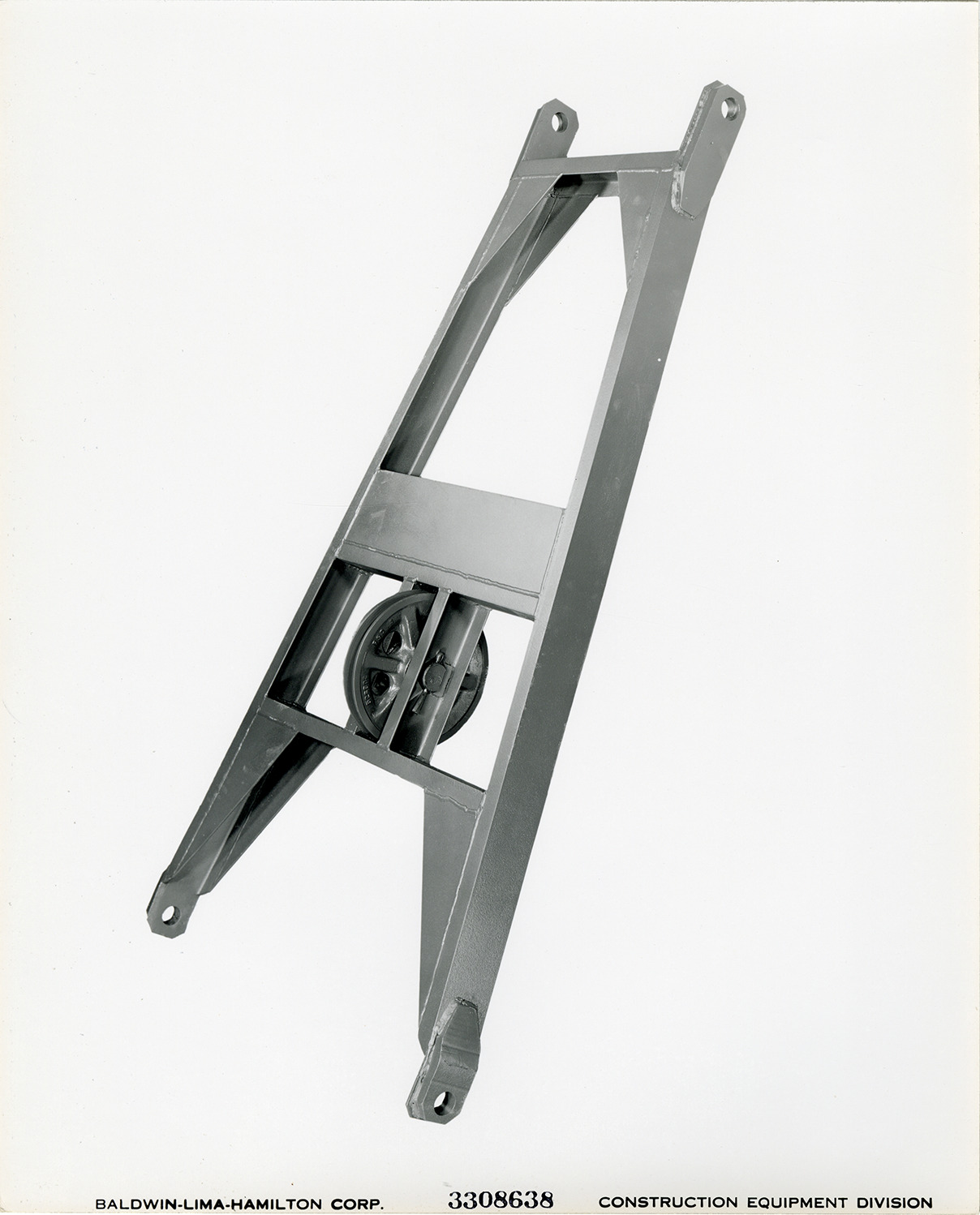 View of an unidentified component for a crane shovel manufactured by the Baldwin-Lima-Hamilton Corporation. Printed on front: "Baldwin-Lima-Hamilton Corp. 3308638. Construction Equipment Division."