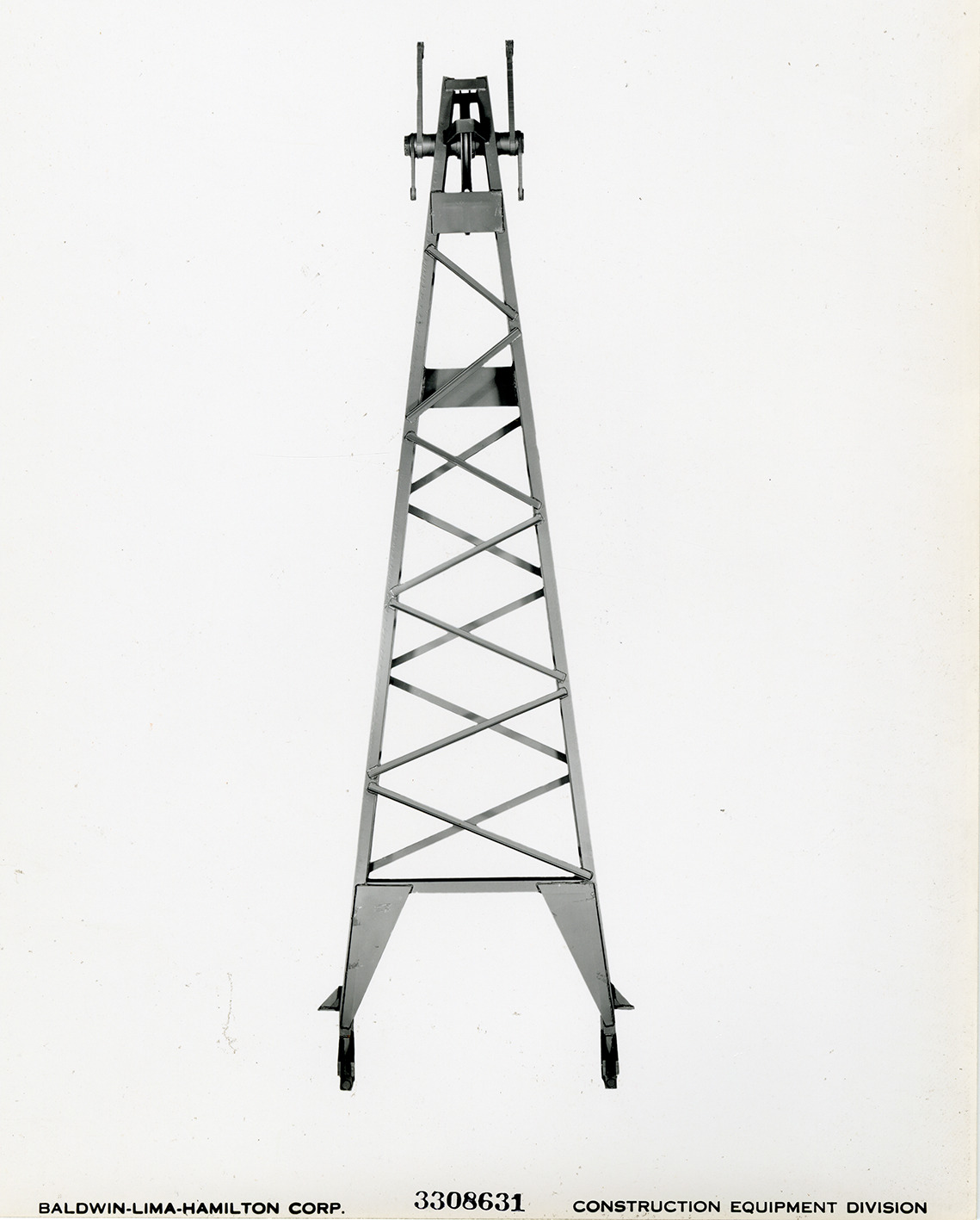 View of an unidentified component for a crane shovel manufactured by the Baldwin-Lima-Hamilton Corporation. Printed on front: "Baldwin-Lima-Hamilton Corp. 3308631. Construction Equipment Division."