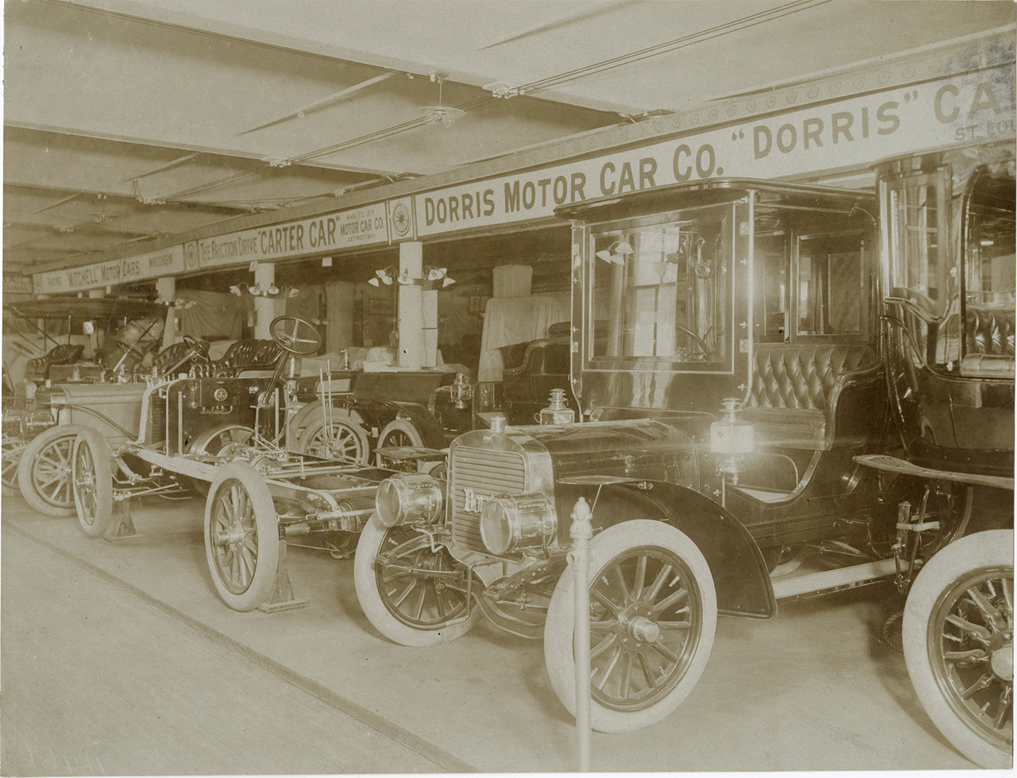 Favorite this☆ Dorris automobiles on display at trade show Description: View of Dorris cars and chassis on display during a trade show. "Dorris Motor Car Co." sign displayed over exhibit. Handwritten on back: "Dorris." Details Resource ID: na052953 Subject: Automobiles Automobiles--Chassis Dorris Motor Car Company Trade shows Photographic prints Date Issued: Unknown year Format: 1 photographic print ; 7.25 x 9.5 in. Member of: National Automotive History Collection Lazarnick Collection Filing Location: Dorris Rights: Physical rights are retained by DPL. Copyright is retained in accordance with U.S. copyright laws.