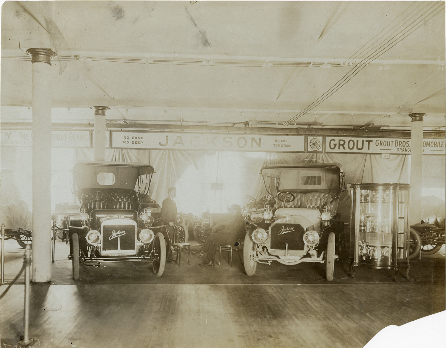 Favorite this☆ Jackson automobiles in trade show Description: View of Jackson cars on display in trade show. Sign in background reads: "Jackson, no sand too deep, no hill too steep." Display case with trophies on right; two men in exhibit area. Handwritten on back: "Jackson." Details Resource ID: na052976 Subject: Jackson Automobile Company Automobiles Trade shows Photographic prints Date Issued: Unknown year Format: 1 photographic print ; 7.5 x 9.5 in. Member of: National Automotive History Collection Lazarnick Collection Filing Location: Jackson Rights: Physical rights are retained by DPL. Copyright is retained in accordance with U.S. copyright laws.