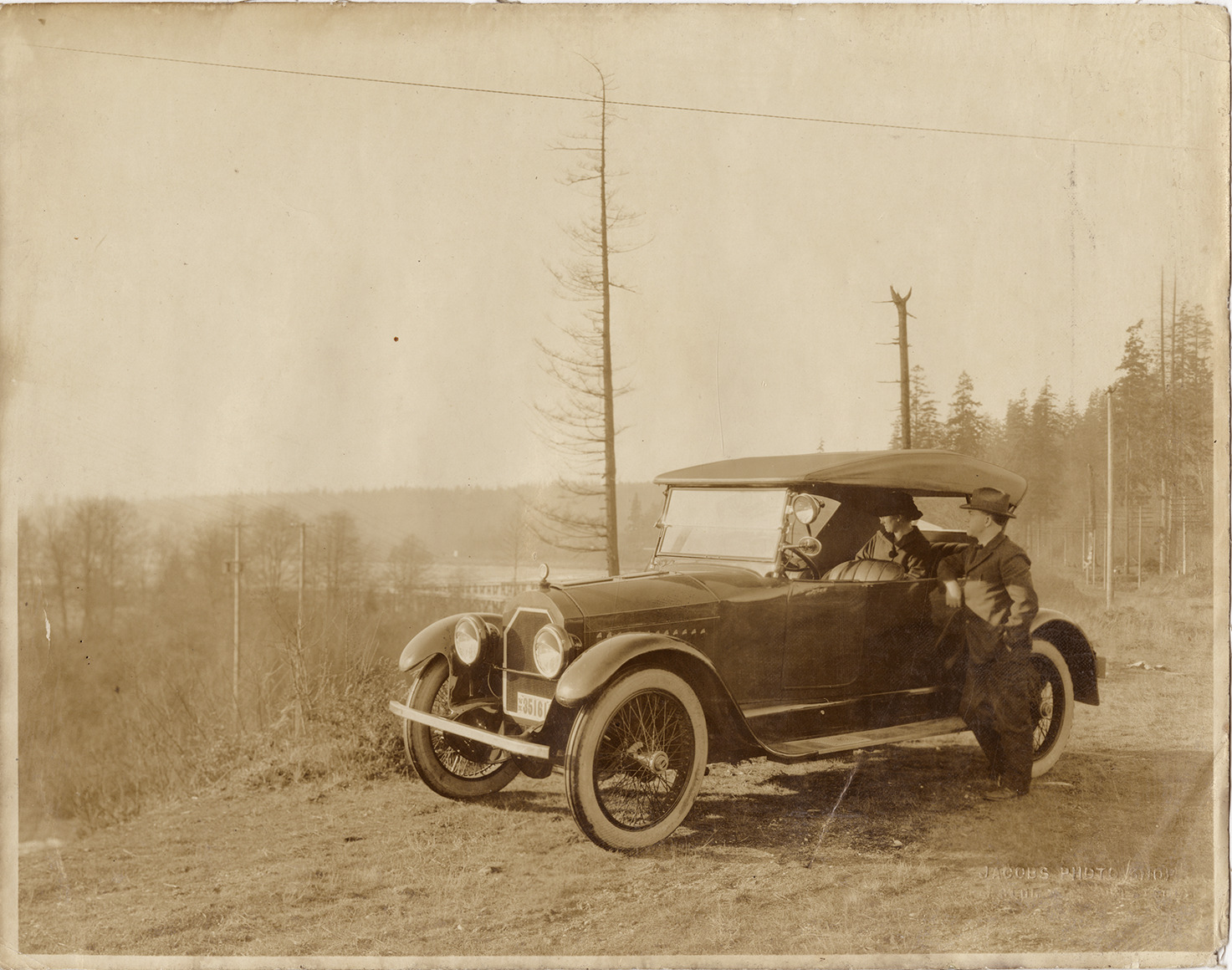 Motorists posing with 1918 Stearns automobile, Columbia River Gorge