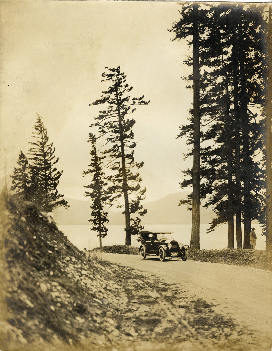 1918 Stearns automobile on roadside, Columbia River Gorge
