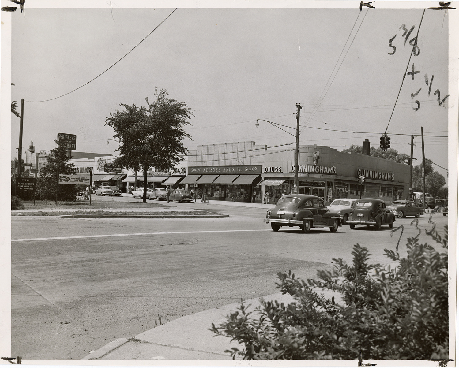 Favorite this☆ Cunningham's drugstore Description: View of Cunningham's drugstore, located at Gratiot and Nine Mile Road. Handwritten on back: "Gratiot & 9 Mile." Details Resource ID: bh029730 Subject: Drugstores--Michigan--Detroit Automobiles--Michigan--Detroit Photographic prints Date Issued: 1952 (year approximate) Format: 1 photographic ; 8 x 10 in. Member of: Burton Historical Collection Filing Location: D/Industries and business houses-Cunningham's Rights: Physical rights are retained by DPL. Copyright is retained in accordance with U.S. copyright laws.