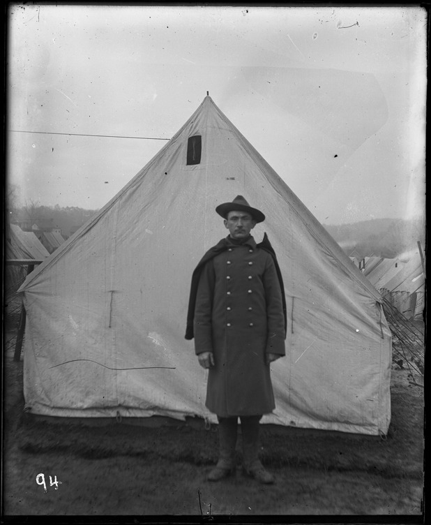 Favorite this☆ Portrait of Stephen Bohn Description: Soldier wearing coat and cape poses in front of tent; camp located at Knoxville, Tennessee. Recorded in ledger: "Pvt. Stephen Bohn." Details Resource ID: SPAW059 Creator: Lake, Alma Subject: Spanish-American War, 1898 Soldiers--Michigan Military camps--Tennessee--Knoxville Photographers--Michigan Glass negatives Date Issued: 1898 to 1899 Format: 1 negative : glass ; 5 x 4.25 in. Member of: Burton Historical Collection Negative Number: SPAW glass neg. no. 94 Rights: Physical rights are retained by DPL. Copyright is retained in accordance with U.S. copyright laws.