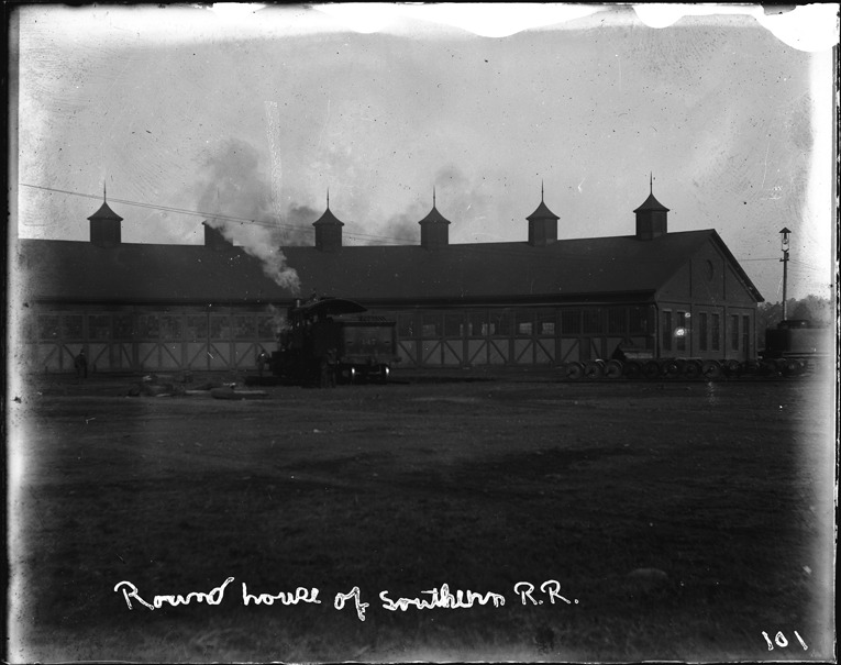 Favorite this☆ Roundhouse of the Southern Railroad Description: View of railroad roundhouse; long brick building with cupolas; steam locomotive on tracks outside building. Written on image: "Round house of Southern R.R." Recorded in ledger: "Round house of the Southern R.R. Knoxvill Tenn." Details Resource ID: SPAW066 Creator: Lake, Alma Subject: Spanish-American War, 1898 Southern Railway (U.S.) Roundhouses (Railroads)--Tennessee--Knoxville Photographers--Michigan Glass negatives Date Issued: 1898 to 1899 Format: 1 negative : glass ; 4 x 5.25 in. Member of: Burton Historical Collection Negative Number: SPAW glass neg. no. 101 Rights: Physical rights are retained by DPL. Copyright is retained in accordance with U.S. copyright laws.