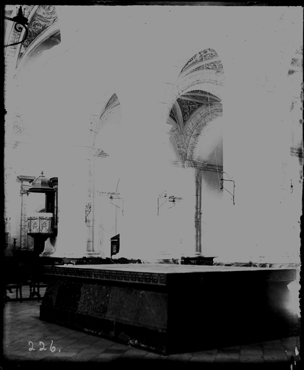 Favorite this☆ Interior of Catedral de San Cristobal, Havana, Cuba Description: View of altar in Catedral de San Cristobal in Havana, Cuba; partial view of vaulted ceiling. Recorded in ledger: "Interior of the same." Negative is faded. Details Resource ID: SPAW154 Creator: Lake, Alma Subject: Spanish-American War, 1898 Altars--Cuba--Havana Cathedrals--Cuba--Havana Church buildings--Cuba--Havana Photographers--Michigan Glass negatives Date Issued: 1898 to 1899 Format: 1 negative : glass ; 5 x 4 in. Member of: Burton Historical Collection Negative Number: SPAW glass neg. no. 226 Rights: Physical rights are retained by DPL. Copyright is retained in accordance with U.S. copyright laws.