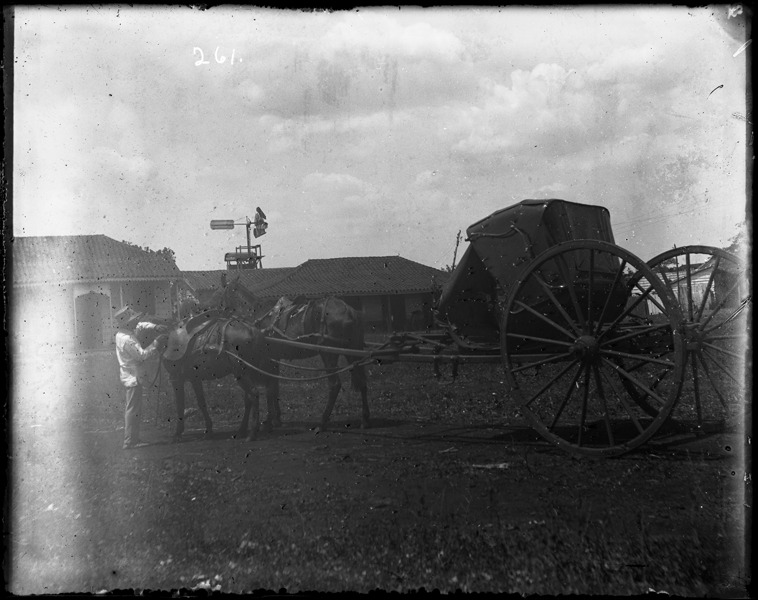 Favorite this☆ Horse-drawn carriage Description: View of carriage pulled by two horses; man adjusts saddle on one horse. Recorded in ledger: "Cuban volante." Details Resource ID: SPAW189 Creator: Lake, Alma Subject: Spanish-American War, 1898 Horse-drawn vehicles--Cuba Photographers--Michigan Glass negatives Date Issued: 1898 to 1899 Format: 1 negative : glass ; 4 x 5 in. Member of: Burton Historical Collection Negative Number: SPAW glass neg. no. 261 Rights: Physical rights are retained by DPL. Copyright is retained in accordance with U.S. copyright laws.