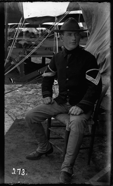 Favorite this☆ Portrait of John A. Falvey Description: Soldier, seated in chair, poses outside of tent. Recorded in ledger: "Q.M. Sgt. John A. Falvey, Co. L 31st Mich. U.S.V.I." Details Resource ID: SPAW201 Creator: Lake, Alma Subject: Spanish-American War, 1898 United States. Army. Michigan Infantry Regiment, 31st (1898-1899) Soldiers--Michigan Photographers--Michigan Glass negatives Date Issued: 1898 to 1899 Format: 1 negative : glass ; 4 x 2.5 in. Member of: Burton Historical Collection Negative Number: SPAW glass neg. no. 273 Rights: Physical rights are retained by DPL. Copyright is retained in accordance with U.S. copyright laws.
