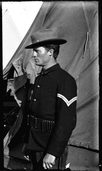 Favorite this☆ Portrait of soldier Description: Soldier in profile poses in front of tent. Recorded in ledger: "Co. L 31st Mich. U.S.V.I." Details Resource ID: SPAW209 Creator: Lake, Alma Subject: Spanish-American War, 1898 United States. Army. Michigan Infantry Regiment, 31st (1898-1899) Soldiers--Michigan Photographers--Michigan Glass negatives Date Issued: 1898 to 1899 Format: 1 negative : glass ; 4 x 2.5 in. Member of: Burton Historical Collection Negative Number: SPAW glass neg. no. 278 Rights: Physical rights are retained by DPL. Copyright is retained in accordance with U.S. copyright laws.