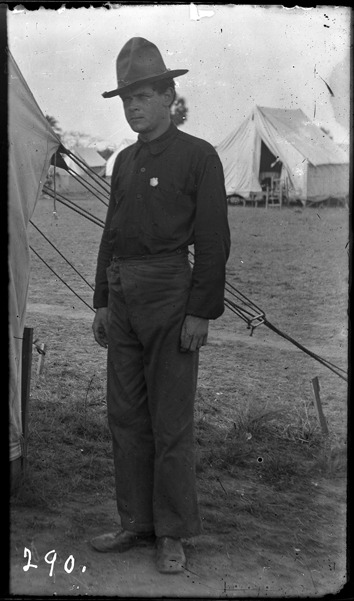 Favorite this☆ Portrait of Arthur W. Carson Description: Soldier poses outside of tent. Recorded in ledger: "Pvt. Arthur W. Carson, Co. L 31st Mich. U.S.V.I." Details Resource ID: SPAW219 Creator: Lake, Alma Subject: Spanish-American War, 1898 United States. Army. Michigan Infantry Regiment, 31st (1898-1899) Soldiers--Michigan Photographers--Michigan Glass negatives Date Issued: 1898 to 1899 Format: 1 negative : glass ; 4 x 2.5 in. Member of: Burton Historical Collection Negative Number: SPAW glass neg. no. 290 Rights: Physical rights are retained by DPL. Copyright is retained in accordance with U.S. copyright laws.