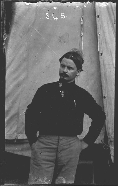 Favorite this☆ Portrait of William H. Bird Description: Soldier poses in front of tent. Recorded in ledger: "Pvt. Wm. H. Bird, Co. L 31st Mich. U.S.V.I." Details Resource ID: SPAW274 Creator: Lake, Alma Subject: Spanish-American War, 1898 United States. Army. Michigan Infantry Regiment, 31st (1898-1899) Soldiers--Michigan Photographers--Michigan Glass negatives Date Issued: 1898 to 1899 Format: 1 negative : glass ; 4 x 2.75 in. Member of: Burton Historical Collection Negative Number: SPAW glass neg. no. 345 Rights: Physical rights are retained by DPL. Copyright is retained in accordance with U.S. copyright laws.