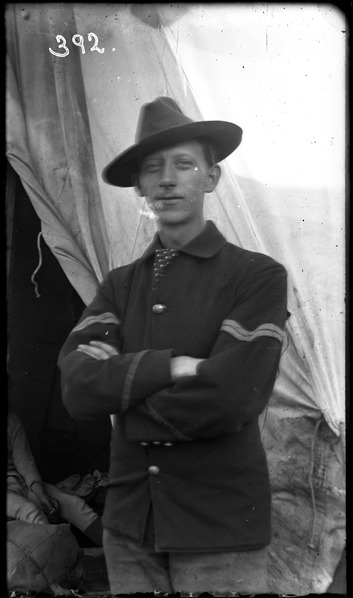Favorite this☆ Portrait of James H. Lindsay Description: Soldier poses in front of tent. Recorded in ledger: "Corp. James H. Lindsay, Co. L 31st Mich. U.S.V.I." Details Resource ID: SPAW319 Creator: Lake, Alma Subject: Spanish-American War, 1898 United States. Army. Michigan Infantry Regiment, 31st (1898-1899) Soldiers--Michigan Photographers--Michigan Glass negatives Date Issued: 1898 to 1899 Format: 1 negative : glass ; 4 x 2.5 in. Member of: Burton Historical Collection Negative Number: SPAW glass neg. no. 392 Rights: Physical rights are retained by DPL. Copyright is retained in accordance with U.S. copyright laws.