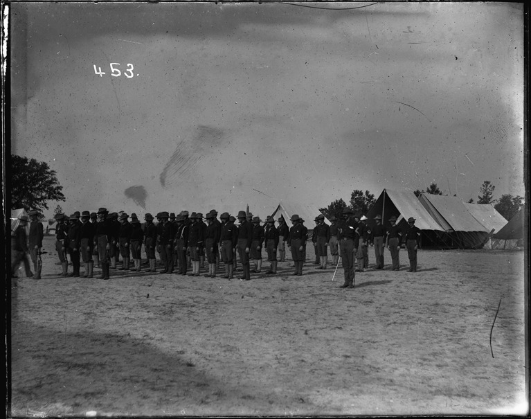 Favorite this☆ Soldiers in formation Description: Group of soldiers stand in formation at camp at Savannah, Georgia. Recorded in ledger: "The last guard mount of the 31st Mich. without arms, Savannah, Ga., May 16th 1899." Details Resource ID: SPAW398 Creator: Lake, Alma Subject: Spanish-American War, 1898 United States. Army. Michigan Infantry Regiment, 31st (1898-1899) Soldiers--Michigan Military camps--Georgia--Savannah Photographers--Michigan Glass negatives Date Issued: 1899-05-16 Format: 1 negative : glass ; 4 x 5.25 in. Member of: Burton Historical Collection Negative Number: SPAW glass neg. no. 453 Rights: Physical rights are retained by DPL. Copyright is retained in accordance with U.S. copyright laws.